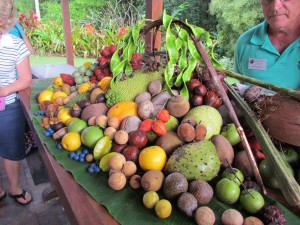 After lunch again, we followed the leader to Colin and Dawn Gray’s place of “Farmstay” a short distance away. Colin was well into his informative talk when we arrived. The walk started with a large palm tree then off to a paddock of newly pruned breadfruit where 14 tonnes of produce where harvested each year; then over to a large orchard, with lots of mangosteen, and a wide variety of tropical fruits.